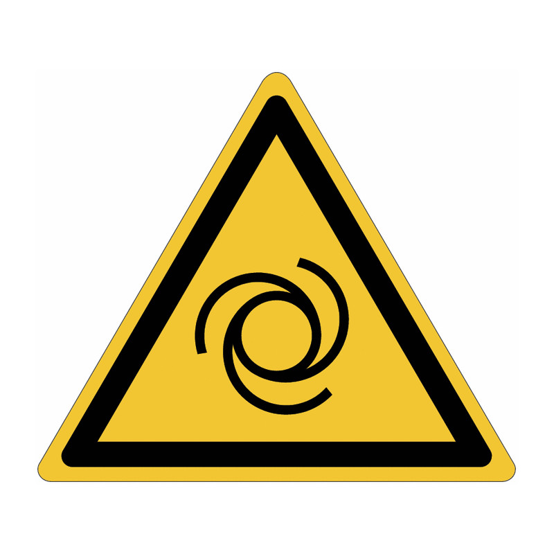 Weisen Sie auf die Gefahr hin, die von einer automatisch startenden Maschine ausgeht, mit einem Warnschild, das in der Nähe der Maschinen zu Wachsamkeit und Vorsicht auffordert.