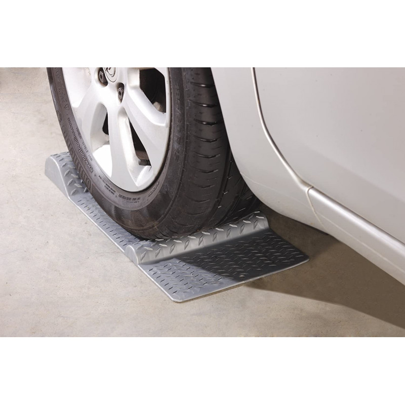 - Der Radstopper ist die perfekte Lösung für sicheres Parken. Es handelt sich um eine Art Matte, die den Endpunkt des Parkens markiert: Der Radstopper verfügt über eine kleine Erhöhung, über die man fahren kann, und eine größere Erhöhung, die das Ende des Radstoppers markiert. Die zweite Erhöhung ist 5,2 cm hoch und bietet beim Überfahren großen Widerstand: Sie wirkt wie ein Bremsindikator und zeigt an, wann man weit genug nach vorne gefahren ist.