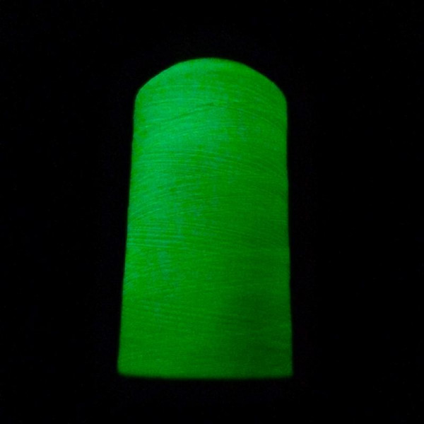Nähgarn, behandelt mit phosphoreszierendem Material, das im Dunkeln leuchtet, nachdem es Licht gespeichert hat. Der Effekt kann mehrere Stunden andauern und es gibt keine Begrenzung, wie oft es aufgeladen werden kann.