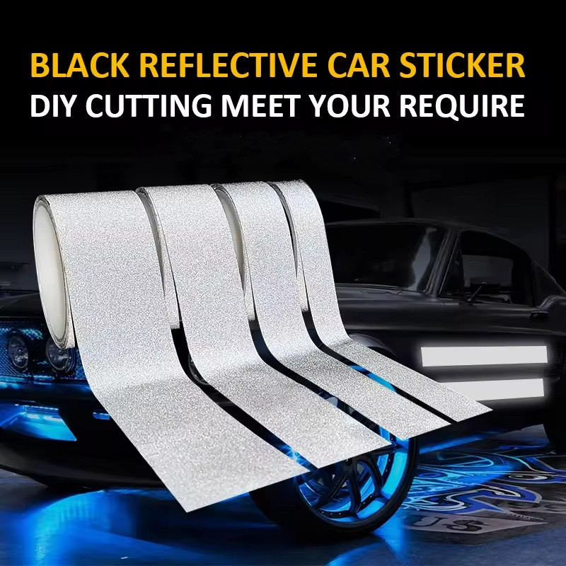 Reflexband retroreflektierend aus Gewebe, schwarze Farbe (reflektiert auch auf der Kleberückseite), wasserfest, selbstklebend.
