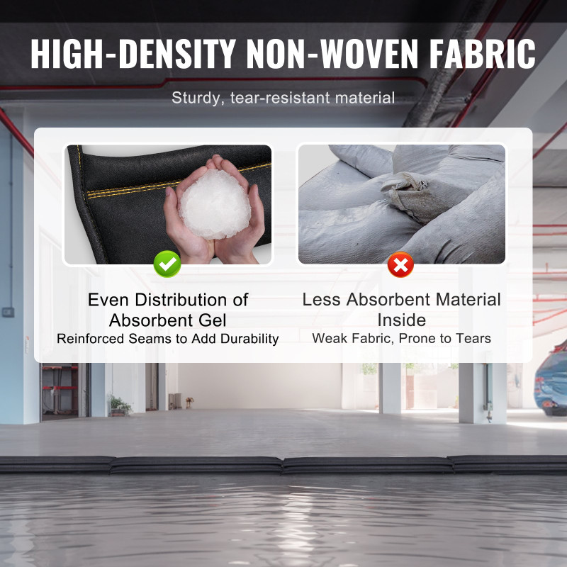 VEVOR- Effektiver Hochwasserschutz: Dieses Set enthält 5 Hochwasserschutzbarrieren, jeweils 153 cm x 15,5 cm groß, mit 619 g Absorptionsgel pro Barriere, das bis zu 10 kg Wasser aufnehmen kann. Bei Kontakt mit Wasser dehnen sie sich schnell zu einer stabilen 8/10 cm starken Schwerlastbarriere aus und blockieren effektiv Hochwasser, um Haus, Garage und Keller zu schützen.