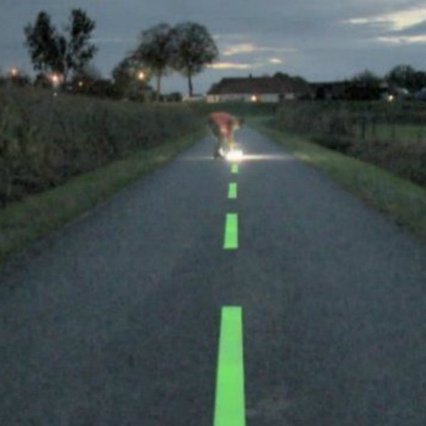The paint has a resin base and creates a thick photoluminescent layer that at night shows the classic fluorescent color.