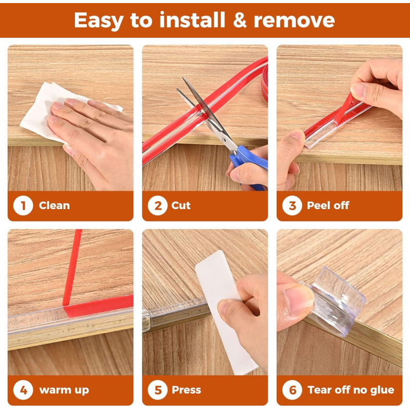 Make table and furniture edges safer without ruining their appearance. This 1m clear PVC corner protector strip cushions accidental impacts and reduces the risk of scratches or bruises, especially in areas with children or the elderly.