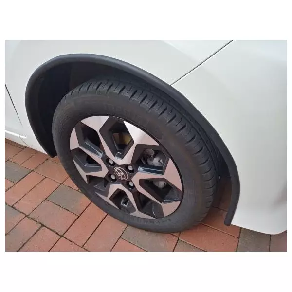 It can be bent or cut to fit any shape, to be applied on the wheel arch of your car above the tires, very useful for protecting the paint from mud and stones.