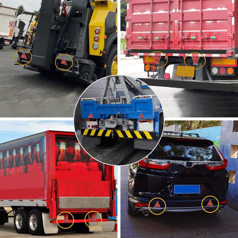 - Couple of reflective triangles in rigid plastic; the light will be reflected in the direction which it comes from.
