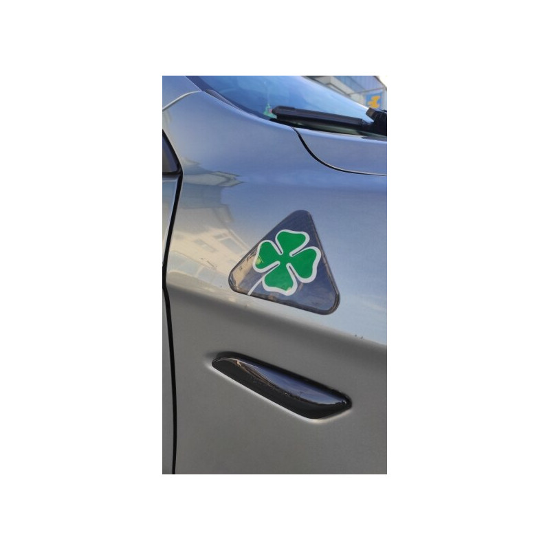 Pair of stickers for right mudguard and left mudguard, carbon effect resin rubber model with green four-leaf clover.