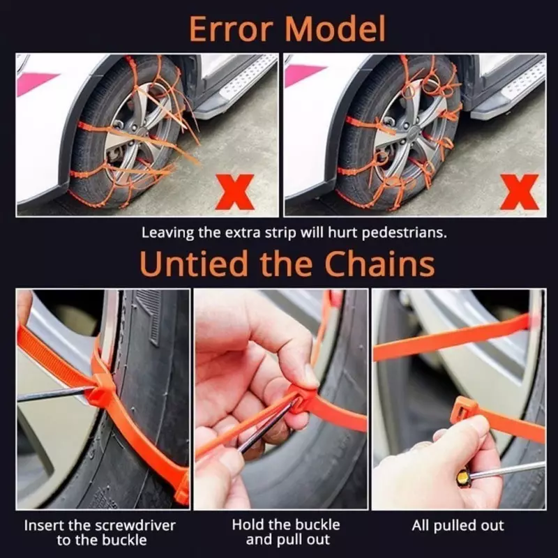 - SAFETY - There is no fixed number of traction chains per wheel required, it depends on the situation. However, to ensure safety, there are 10 pieces per package.