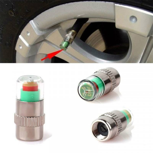 The package includes: 4 caps with pressure indicator for the valve of your tire.
