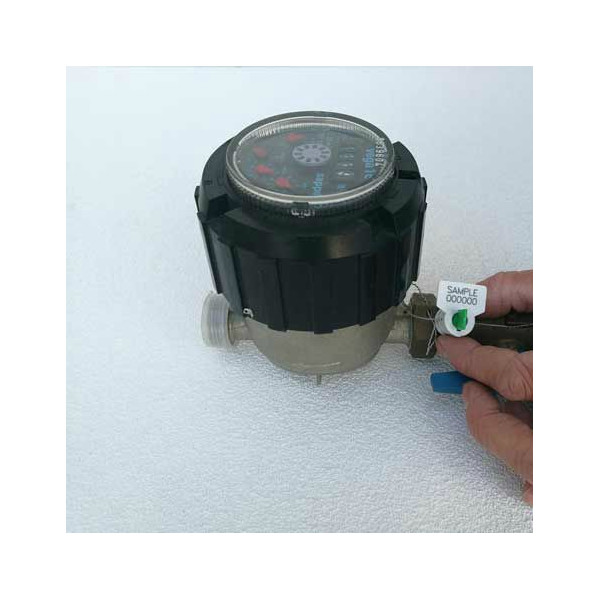 - Estos precintos de hilo para contadores son de un solo uso y están fabricados en un plástico resistente, el policarbonato, en el que se inserta, mediante ultrasonidos, una pequeña manilla que permite atrapar el hilo, haciendo que este precinto sea muy seguro.