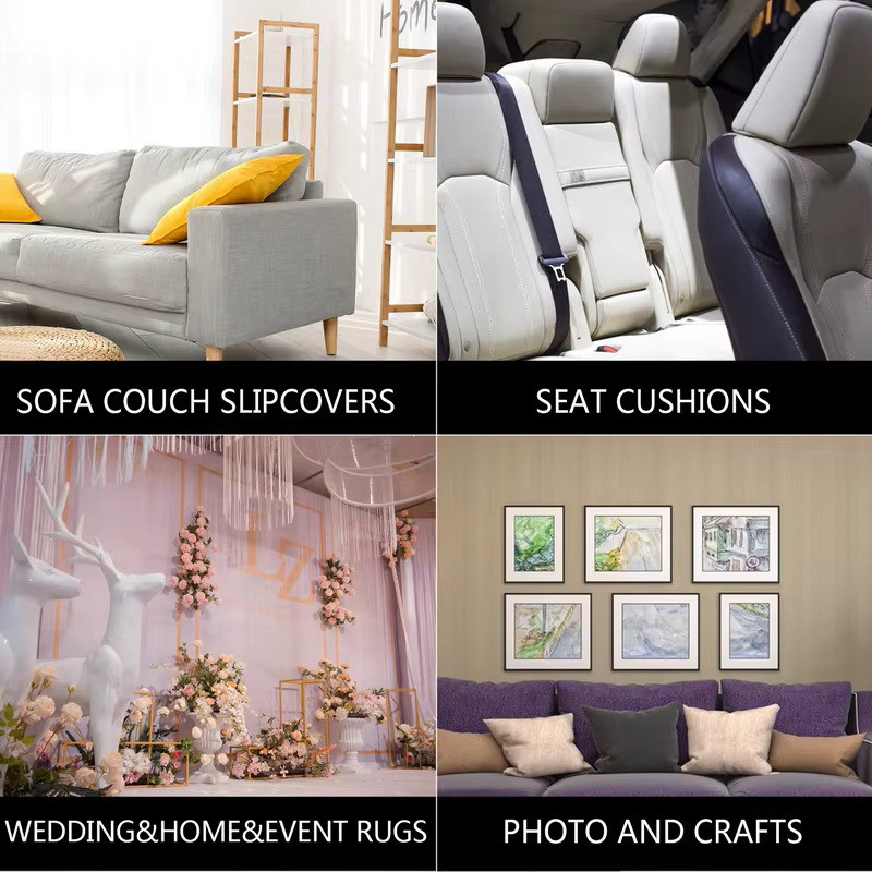 - Esta cinta para alfombras puede proporcionar una excelente adhesión en superficies lisas y rugosas, como suelos de cerámica, madera y parquet. Se utiliza para fijar alfombras en diferentes superficies para manualidades y decoraciones.