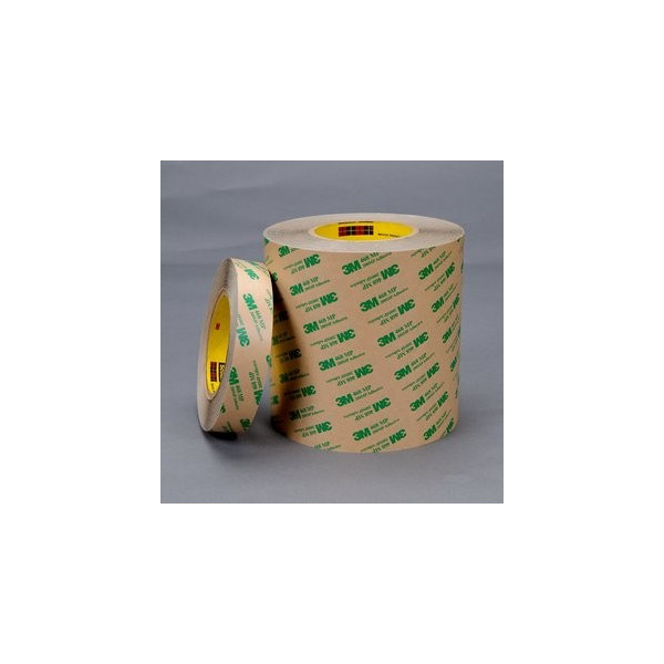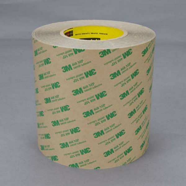 La cinta de transferencia adhesiva 468MPF de 3M™ es un adhesivo acrílico de alto rendimiento a 200MP en una funda de película de poliéster transparente de 2,0 mm.