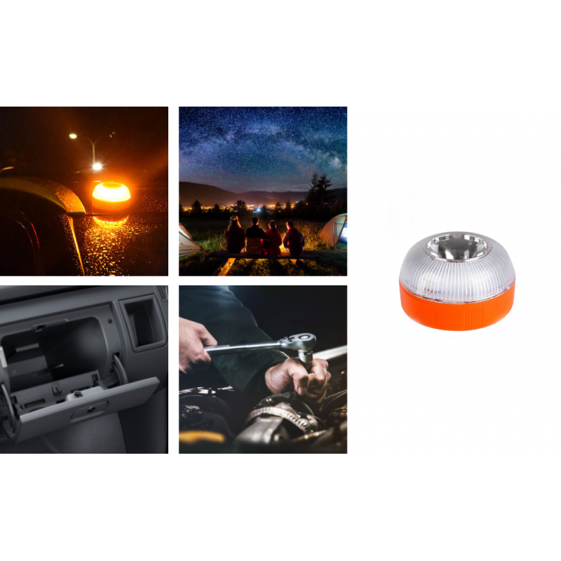- Esta luz de advertencia para coche tiene 2 bases adhesivas en la parte inferior, lo que permite fijarla fácilmente a diferentes ángulos del vehículo, y se instala rápidamente. Funciona con tres pilas 3AAA incluidas.