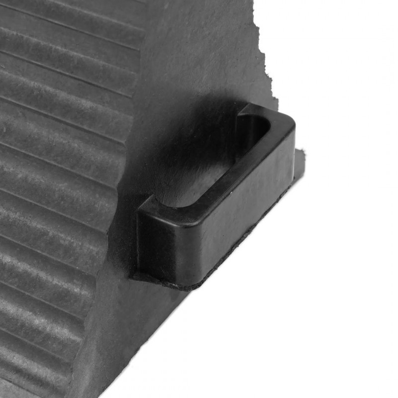 - Topes de rueda de goma para bloquear vehículos estacionados incluso en zonas con gran pendiente. Recomendados tanto en exteriores como en interiores como garajes y aparcamientos.