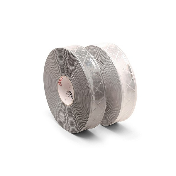 Cinta en material vinílico con una propiedad muy importante, que es la refracción: gracias a su suporte cubierto por micro prismas, las tiras reflejan los faroles de los coches, la luz del día, tanto en la sombra como por la noche. La intensidad del efecto es visible hasta 250 metros.