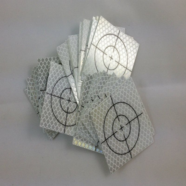 Marcadores reflectantes autoadhesivos con cruz de mira diseñados para levantamientos y monitorización a largo plazo. Ideales para observaciones en edificios, fachadas, muros y obras de contención, puentes, vías férreas, túneles y puntos de difícil acceso, permiten un apuntado rápido y repetible en el tiempo incluso a larga distancia (hasta ~200 m en condiciones óptimas).