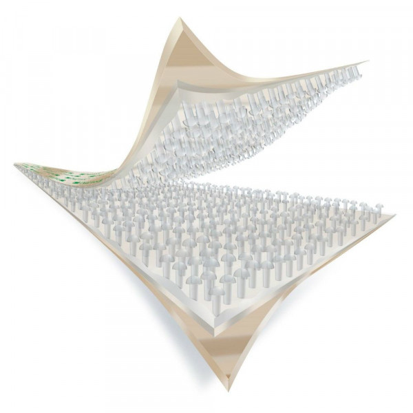 - Sistema compuesto por una parte adhesiva de alto rendimiento (VHB) unida a una parte texturizada de poliolefina.