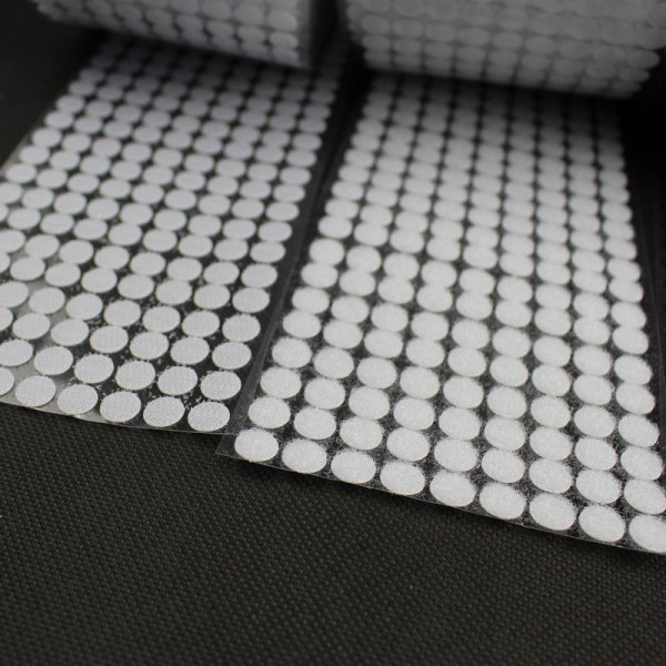 • 500 pares de puntos autoadhesivos de velcro, 1 cm de diámetro. En total recibirá 1000 puntos adhesivos: 500 con ganchos y 500 con bucles de color blanco.