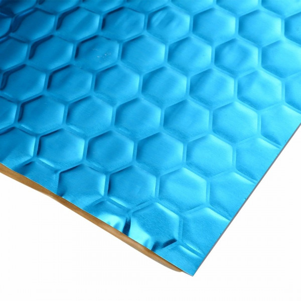 - Espesor nominal: 2 mm; Tamaño de la hoja en venta 46cm x 150cm, Hoja de aluminio en color azul o dorado, capa de 0,1mm CON ADHESIVO.