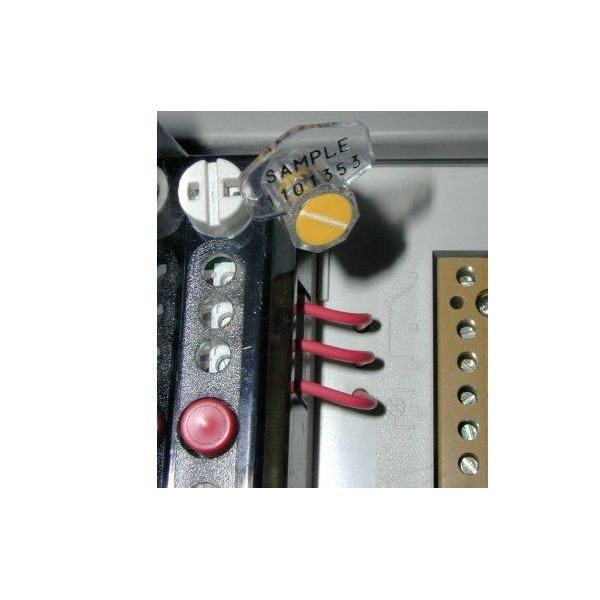 - Ces scellés à fil pour compteurs sont à usage unique et sont fabriqués en plastique résistant, le polycarbonate, dans lequel est insérée, grâce aux ultrasons, une petite poignée qui permet de piéger le fil, rendant ce scellé très sûr.
