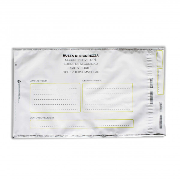 - Le sachet standard de Sécurité est produit en coextrudé blanc/noir 60my