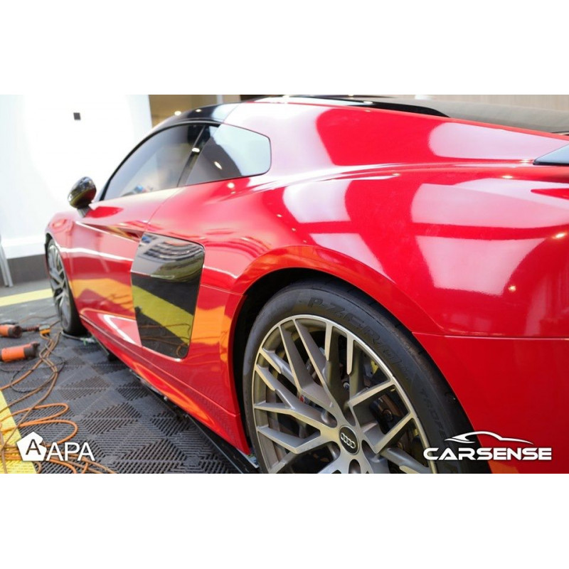 - Améliore l'esthétique du véhicule, lui donnant un look sportif. Protège la surface sous-jacente des petites éraflures et rayures. Complètement amovible sans laisser de résidus de colle.