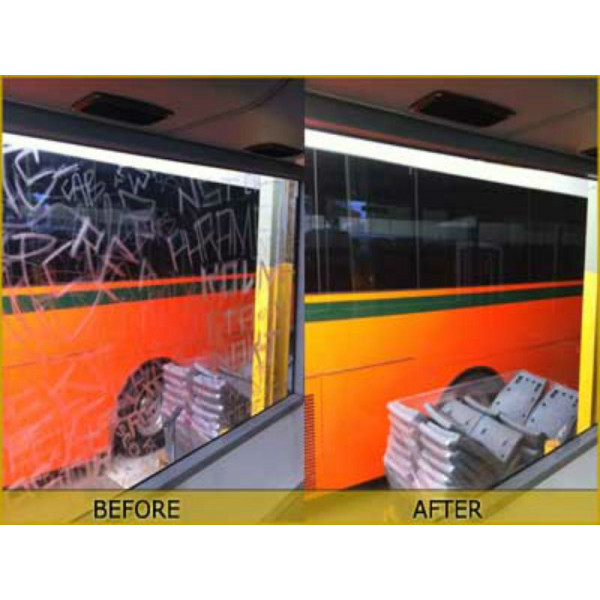 - Il forme une couche résistante et invisible entre le vandalisme et le verre, aidant à maintenir les surfaces vulnérables transparentes, propres et sans rayures.