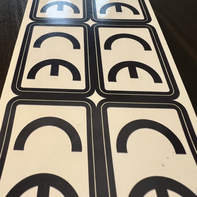 • Munies d’un adhésif permanent pour une application durable, sur fond blanc avec contour noir et écriture noire.