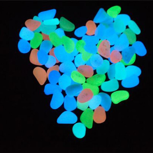 Petits galets en résine de qualité excellente en couleurs différents de jour et brillants dans la nuit, ils peuvent être rechargés avec une source lumineuse (rayons du soleil, o lumière artificielle).