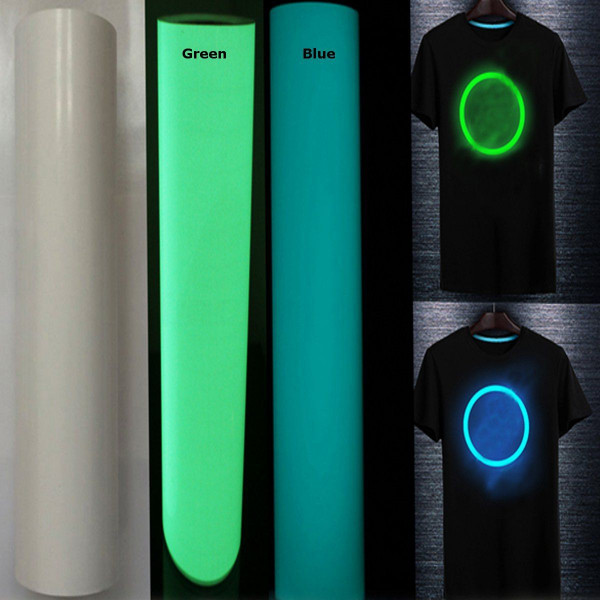 Film de transfert résistant à la chaleur (avec fer) phosphorescent s'allume en bleu foncé / vert 50cm