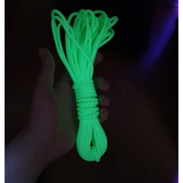 Corde en polyester blanche pendant la journée, une fois illuminée elle accumule la lumière et la libère dans l’obscurité.