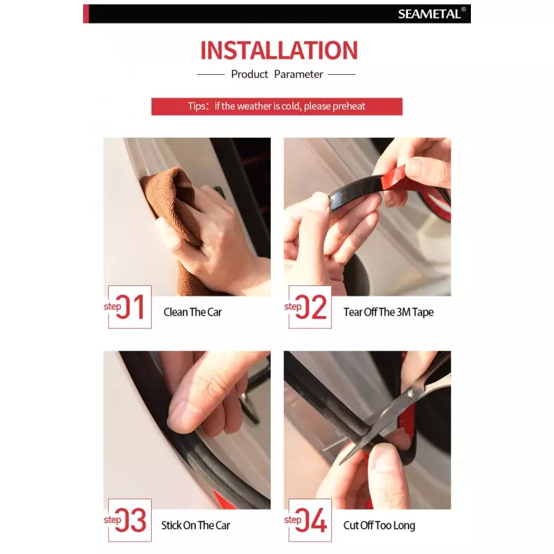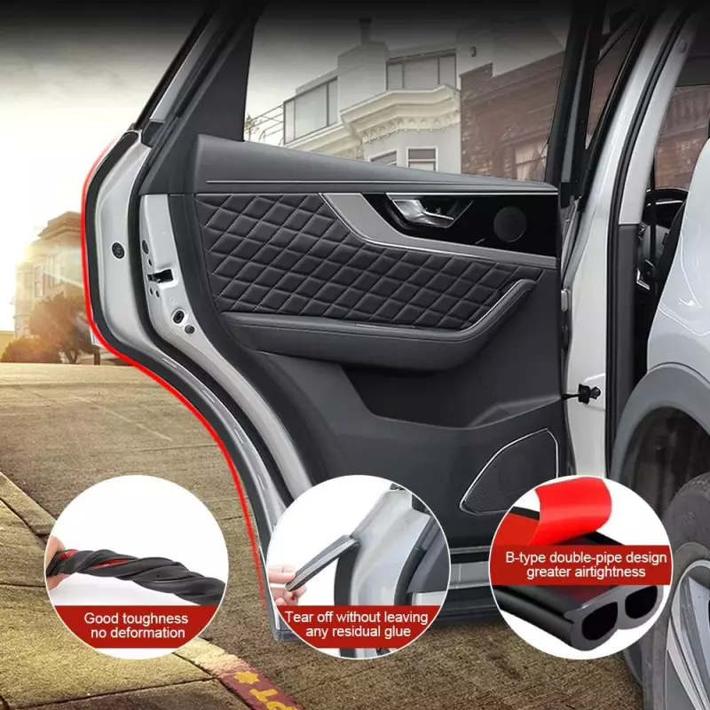 - Ce joint de porte est équipé d’un adhésif siliconé spécial qui ne sèche pas avec le temps, garantissant une isolation durable de l’habitacle. Il réduit efficacement le bruit du vent et empêche l’entrée de poussière et de pluie.