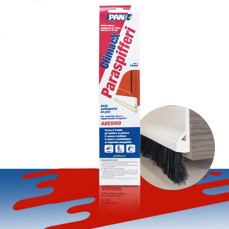 Boudin de porte adhésif en PVC avec brosse en nylon.