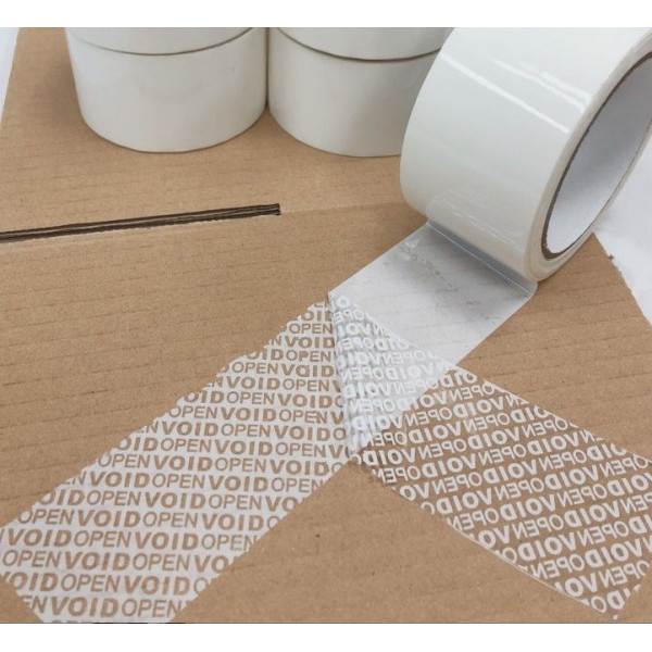 Nastro di sicurezza antimanomissione bianco 48mm x 50m – Tamper Evident "VOID OPEN"