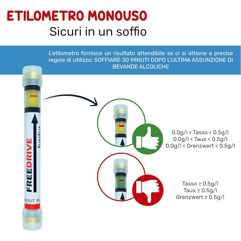 assunzione di alcol. In caso di incertezza non mettersi alla guida e ripetere il test a distanza di 10 minuti.