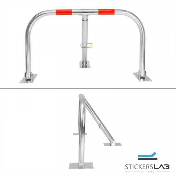 Dispositivo per la tutela del parcheggio per autovettura da utilizzare su area privata chiusa al pubblico transito. Costruzione in tubi di acciaio, estremamente resistente agli urti, al sormonto e allo schiacciamento, agli atti vandalici e alla corrosione (zincatura a caldo). Il prodotto è già pronto per l’installazione con il relativo sistema di chiusura e kit di fissaggio a terra. Totale protezione per gli pneumatici, grazie ai piedi dalle forme arrotondate.