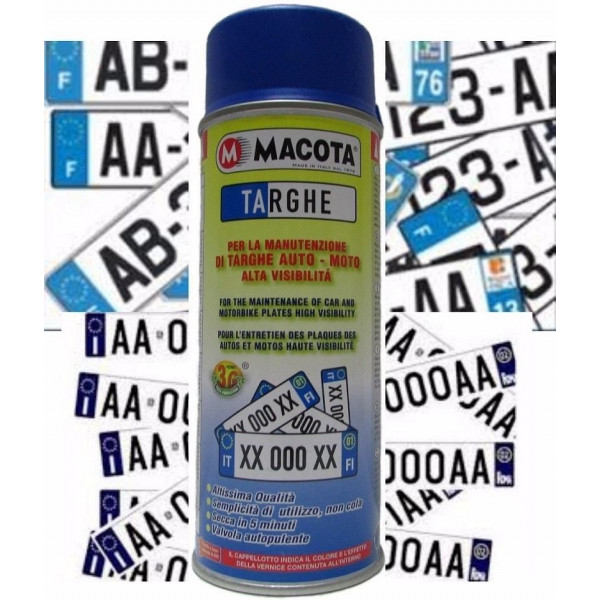 Macota- Prodotto realizzato per la manutenzione di targhe auto, moto e caravan.