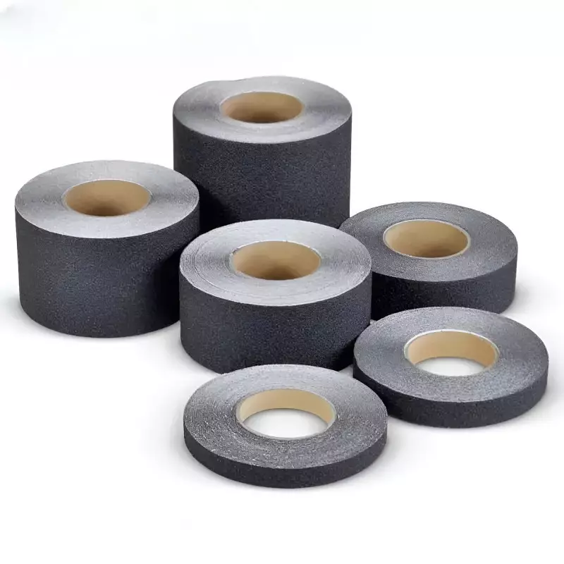 Nastro adesivo antiscivolo per vari usi, applicabile su qualsiasi superficie come rampe, scale e pavimenti.