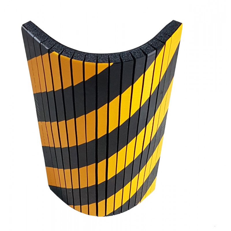 Queste strisce ammortizzanti auto-adesive sono realizzate in un materiale brevettato che assorbe gli urti fatto di polietilene reticolato reso a onde e riciclabile al 100%.
