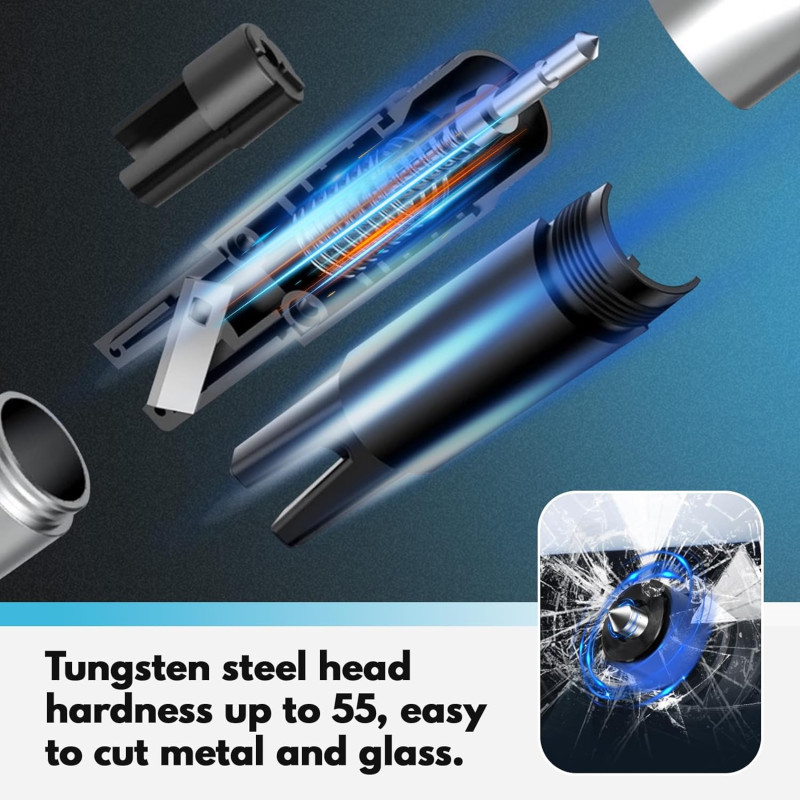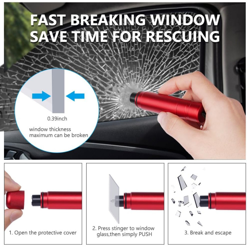 Come Utilizzarlo: In caso di emergenza, afferra il martello e utilizza la punta in acciaio per rompere il finestrino laterale dell'auto. La lama integrata ti permetterà di liberarti rapidamente da una cintura di sicurezza bloccata. Progettato per un uso facile e intuitivo, anche in situazioni di panico.