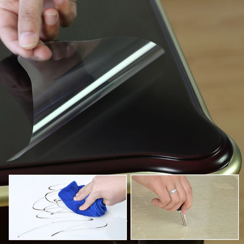 Pellicola protettiva in PET super trasparente per la protezione dei tuo mobili, tavoli, cucine, ecc. essendo air-free non fa bolle ed è facile da applicare anche per un non esperto.