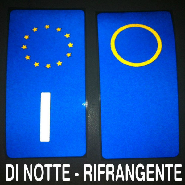 Stampati con metodo serigrafico con vinile riflettente così da avere una durata illimitata, realizzati in vinile omologato antigraffio. Materiale prespaziato senza nessuna sbavatura, colori e formati uguali alla targa originale, l' adesivo con la I e le 12 stelle va applicato sul lato sinistro della targa mentre quello con il cerchio giallo sul lato destro.