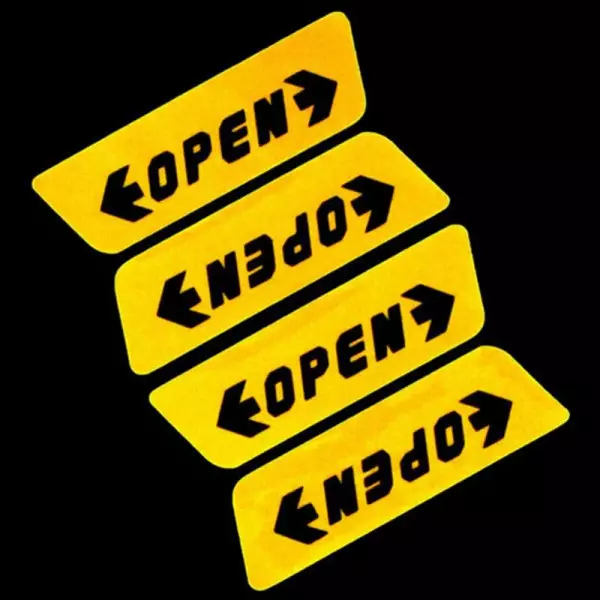 Realizzati in vinile adesivo di colore giallo o rosso, con scritta "OPEN" .