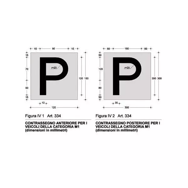 rispetta perfettamente le misure indicate dal codice della strada centimetri 12 x 15 per il cartello anteriore e centimetri 30 x 30 per il cartello posteriore.