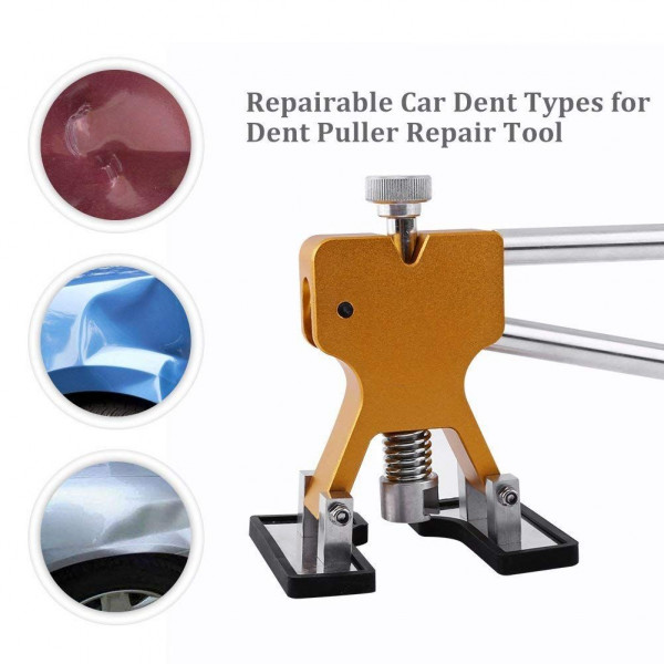 Kit per rimuovere piccoli bozzi o ammaccature dalla maggior parte dei veicoli. Kit con 10 linguette per estrattore e un estrattore in alluminio super resistente.