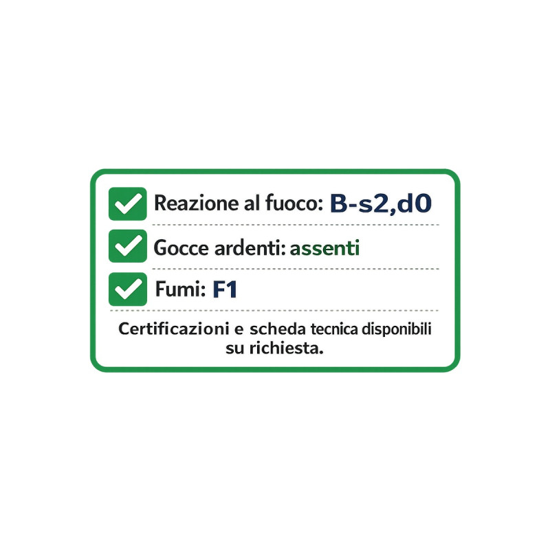 Pannello assorbente acustico PET con classificazione di reazione al fuoco: Classe Bs2d0 (ignifugo).