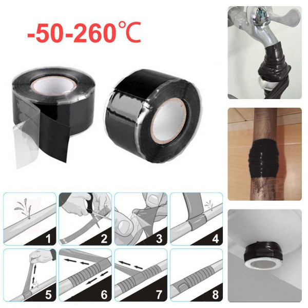 Pode ser usada como fita de vedação e reparo de instalações hidráulicas, saídas de ar, dutos e mangueiras. Também pode ser usada para reparar mangueiras de radiador com vazamento em um veículo.