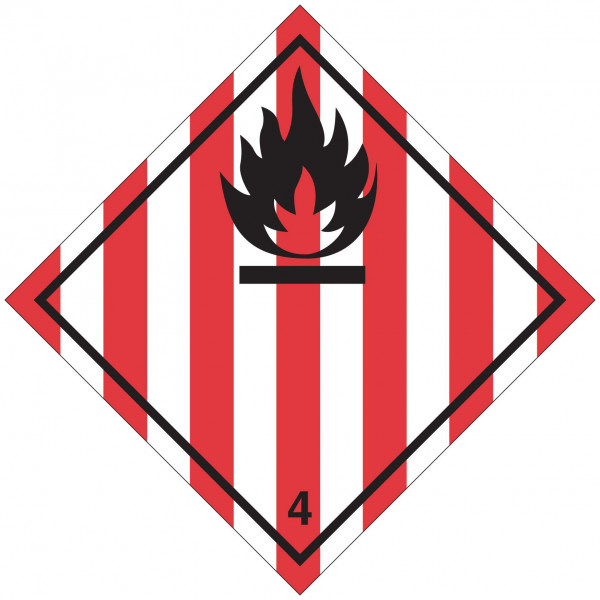 Etiqueta de PVC de classe 4, divisão 4.1 para sólidos inflamáveis, substâncias auto-reativas e explosivos sólidos ADR dessensib