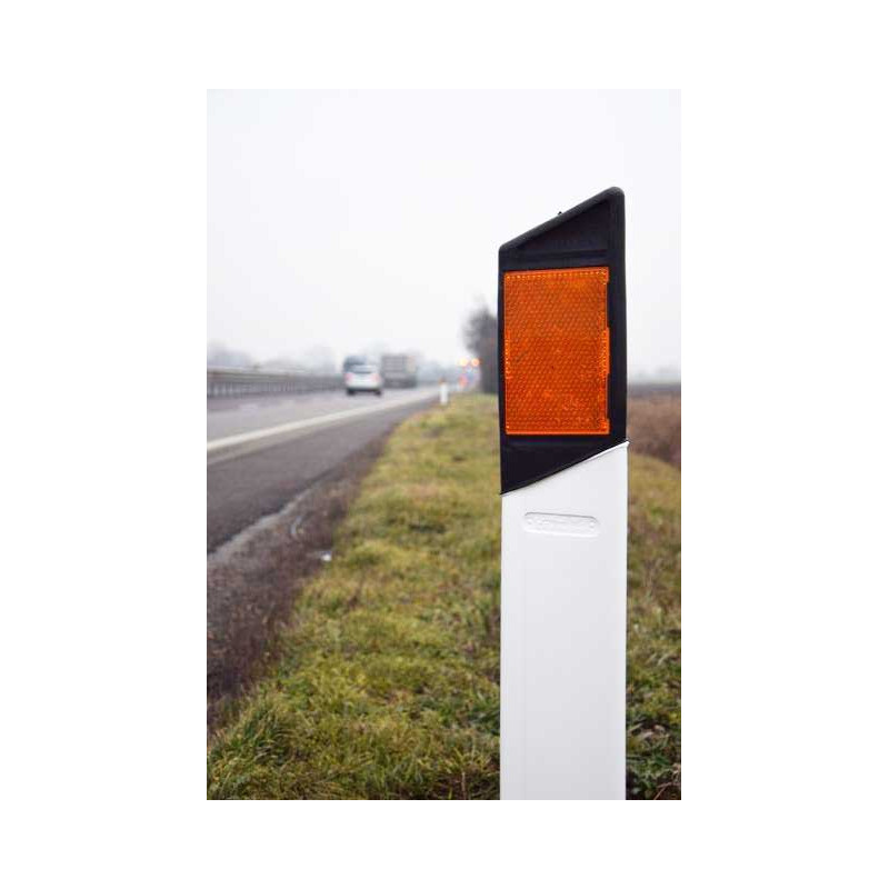 - Delineador de margem normal com dois refletores de 5x18 cm. Branco/Vermelho aprovado. Altura 135 cm.
