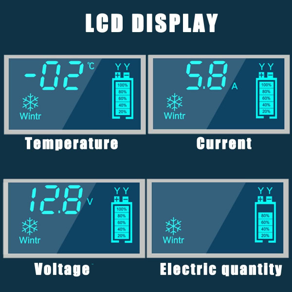 O carregador detecta automaticamente a temperatura externa, inicia automaticamente o modo inverno e verão e seleciona a tensão de carga apropriada de acordo com a temperatura, sem necessidade de ajuste manual.
