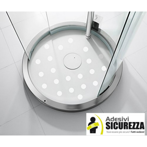 Circulos antiderrapante constituídos por uma superfície em borracha em um suporto em poliéster mórbido, que faz que o produto seja apto para áreas aonde se podem caminhar em pés descalços.